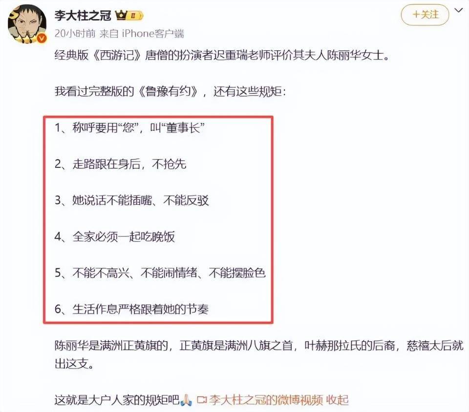 有人完整看完了《鲁豫有约》关于陈丽华、迟重瑞的那期节目,罗列出了六大规矩。