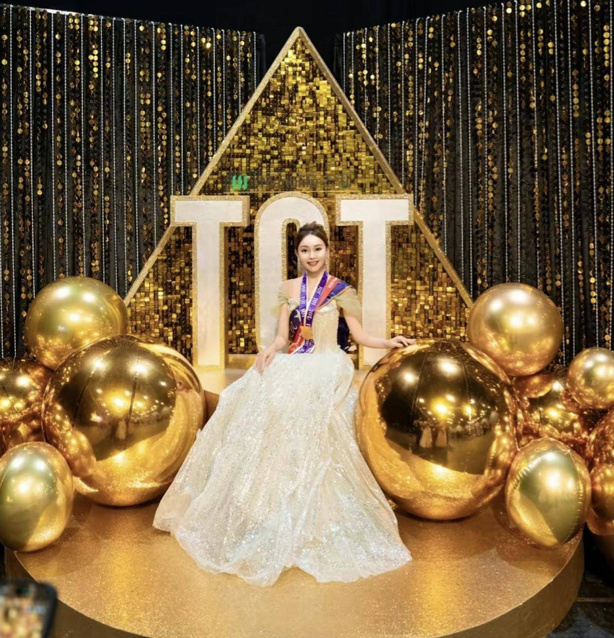 在颁奖礼台上,张利华一手捧鲜花,一手拿着奖杯,与其他获奖同事接受颁奖。在颁奖礼结束之后,张利华到颁奖礼现场,在有着“TOT”背景的地方拍照,只见她坐在金色的球中,犹如女王一般,气势十足,而这是TOT会员才有的待遇。当然少不了的还有与团队总监王玉环的合照,王玉环当晚身穿桃红色百褶长裙现身,合照的时候,张利华一只手还搭在王玉环的背上,王玉环也是一脸开心,毕竟自己的手下业务能力那么强,也证明自己领导有方。