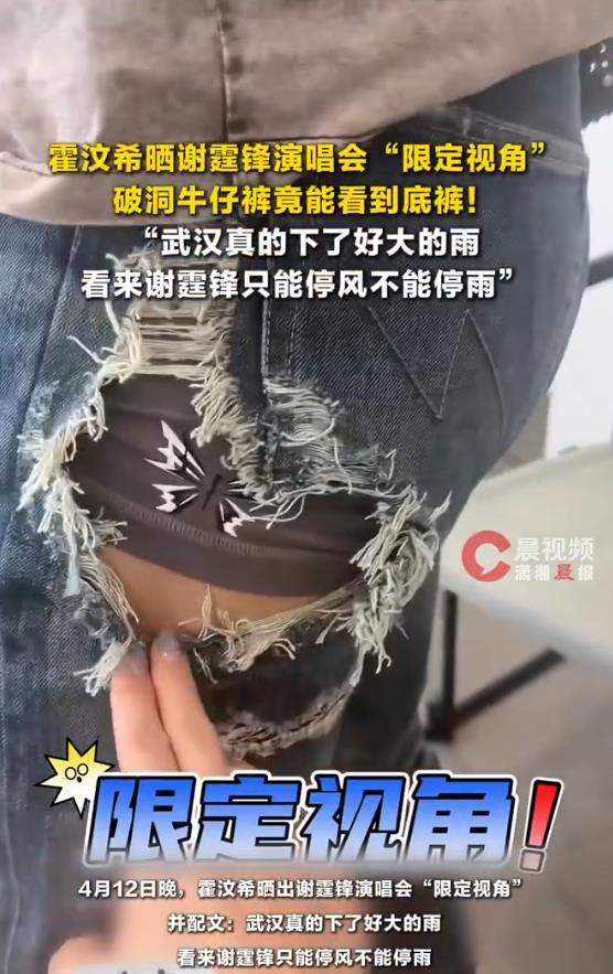 热搜“谢霆锋牛仔裤破洞露玉蝴蝶”背后,是4月11日武汉演唱会上一场精心又意外的视觉呼应。当晚暴雨如注,却未能浇熄舞台热度,谢霆锋身着破洞牛仔裤劲歌热舞时,屁股位