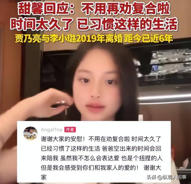 甜馨也格外懂事,从小就懂得体谅父亲的不易,很少让贾乃亮操心。
