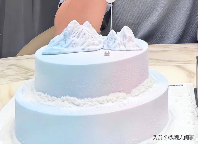 最让人暖心的,是甜馨亲手为爸爸制作的生日蛋糕。没有精致裱花与昂贵食材,雪山渐变造型搭配简约的蜡烛和珍珠,处处透着用心。