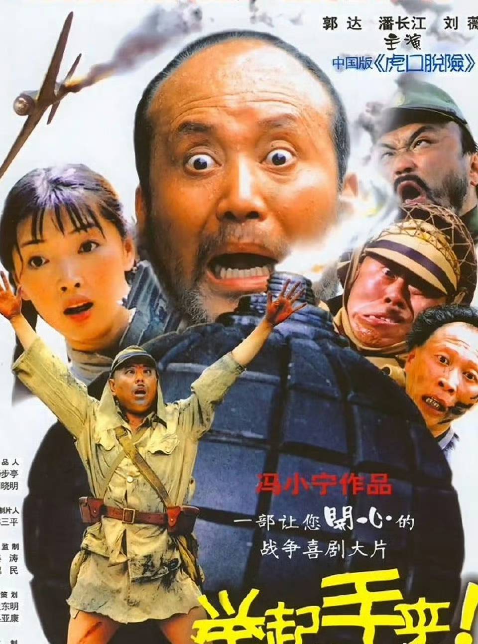 《举起手来》系列的灵魂,从来不是宏大的战争场面,而是郭达和潘长江这对黄金搭档。第一部里,郭达演那个老实巴交、赶着驴车却被卷入护宝任务的中年农夫,一句“这玩意儿啥时候是个头”,让无数人笑出眼泪。潘长江演罗圈腿鬼子,走路的姿势和挤眉弄眼的贱兮兮表情,成了一代人的童年记忆。