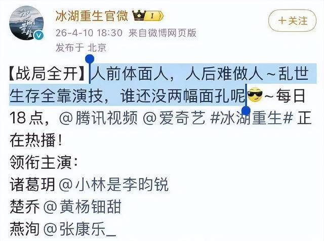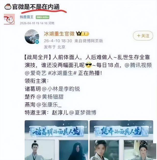 2026年4月8日,一部名为《冰湖重生》的古装剧,播出前噱头拉满,声称: