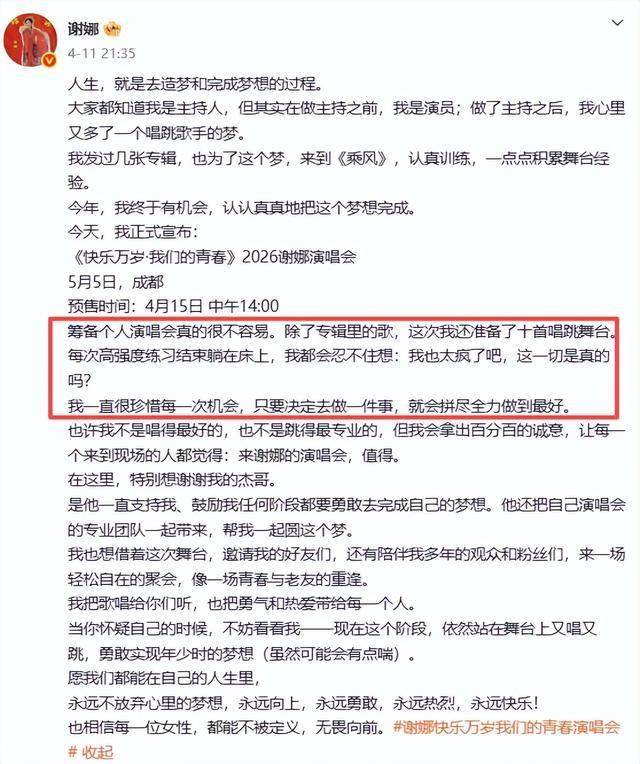 谢娜想开演唱会,没问题。