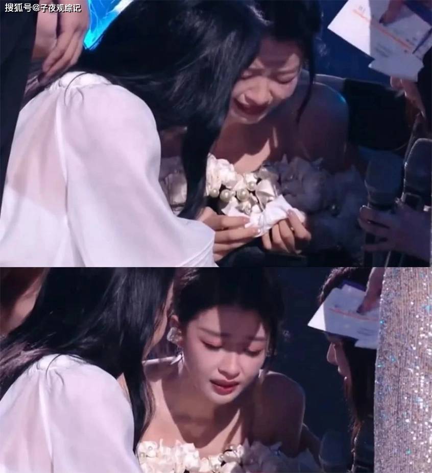 她就差那么一点点票数就被淘汰,凌晨的时候开始做直播, 眼睛红红的,说想拿回自己的背包,可是被节目组用流程规定当理由拦在外面,连进入候场区的资格都没有
