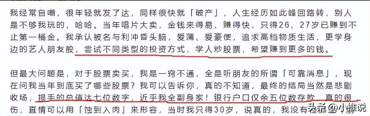 结果股票大跌,损失高达七位数,几乎赔光了所有积蓄。