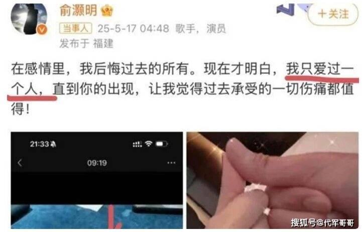 恋情曝光后,两人的相处模式一直呈现出“一热一冷”的反差感。经历过拍戏烧伤、事业停滞与感情受挫的俞灏明,对这段感情格外珍视,渴望得到外界的认可,多次通过高调方式表达心意——2025年5月,他晒出钻戒及拉钩照,配文“直到你的出现,让我觉得过去承受的一切伤痛都值得”,疑似向王晓晨求婚,引发全网婚讯猜测;此外,他还在音乐节喊话“脱掉的样子只给一个人看”,社交平台发布藏头诗“所念皆晨曦,星河尽明意”,甚至坦然展露烧伤疤痕与王晓晨牵手,用细节传递“劫后余生遇真爱”的笃定。