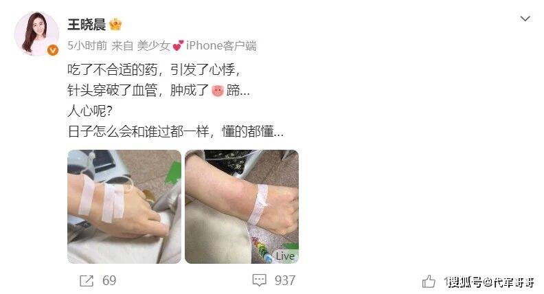 而此次引发感情生变猜测的导火索,是王晓晨在4月13日发布的一条社交动态。当天,她晒出多张独自在医院输液的照片,照片中可见她的手臂因针头穿破血管而红肿,甚至被她调侃“肿成了猪蹄”,配文更是意味深长:“人心呢?日子怎么会和谁过都一样,懂的都懂......”。据悉,王晓晨此次输液是因为吃了不合适的药物引发心悸,身体的不适加上情绪的低落,让这条发文充满了委屈与感慨,但在网友眼中,这番话却被赋予了别样的含义,纷纷将矛头指向俞灏明,猜测两人或许产生了矛盾,甚至有网友直言“这话丝毫没给对方留体面”,一时间“王晓晨俞灏明感情生变”的话题迅速发酵。