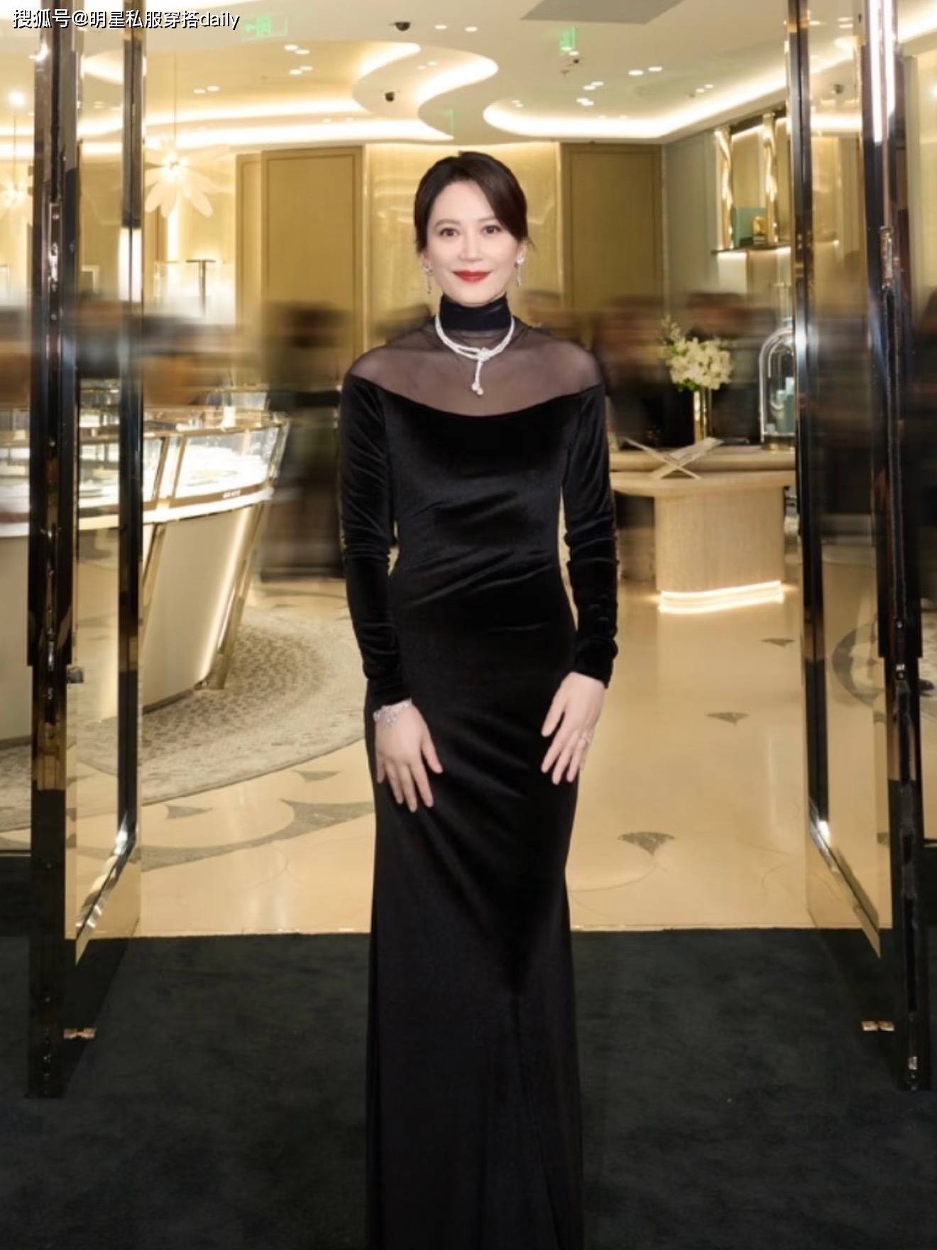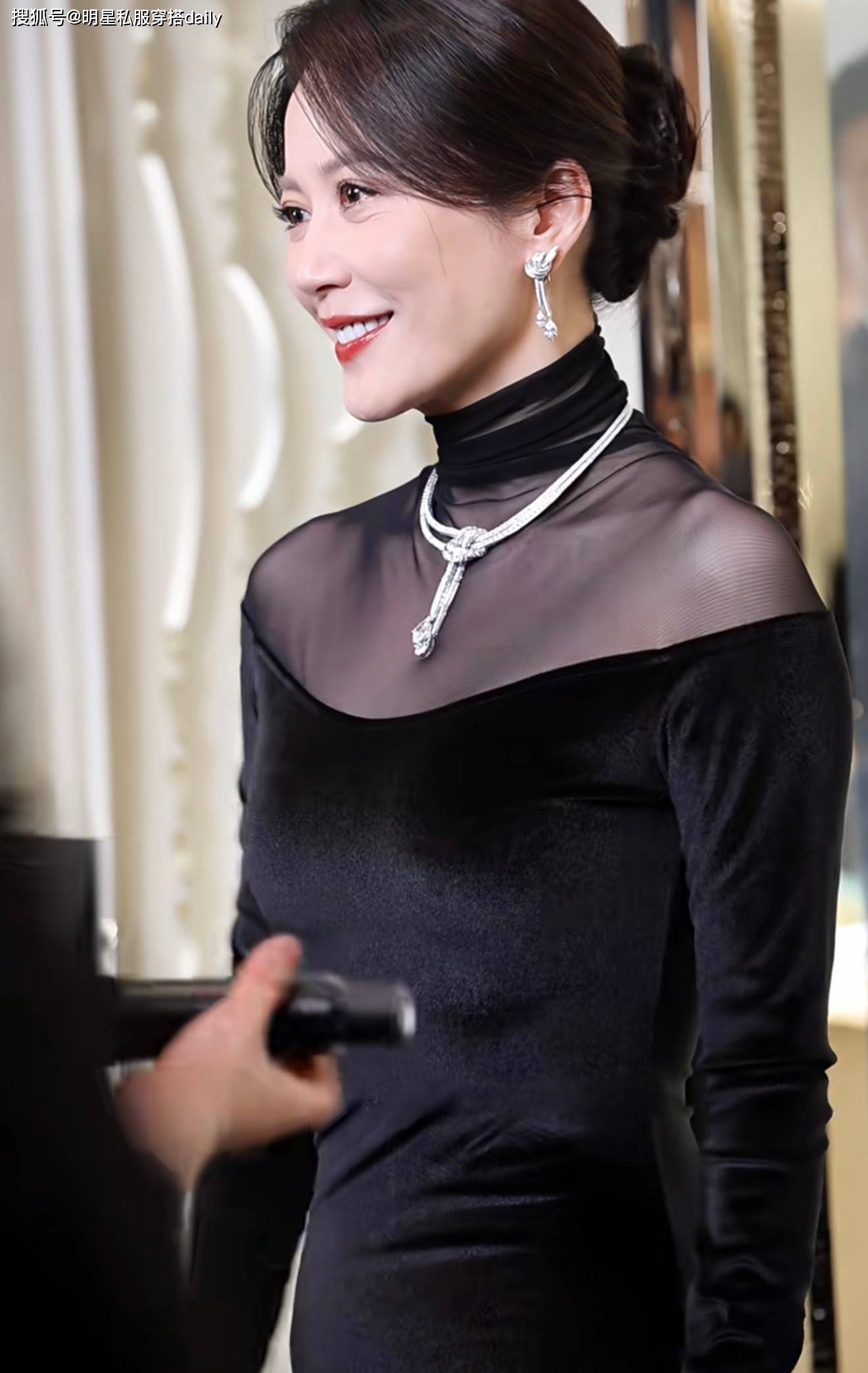 为了能衬托出她的好气质,俞飞鸿特意做了一个温婉的盘发造型,搭配精致妆容,和整体黑色系穿搭完美融合!