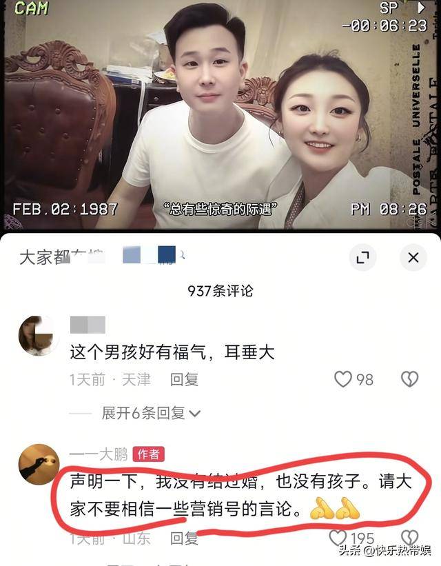 此前有传闻说郭新鹏也是二婚,没想到他本人却在评论区亲自辟谣,表示自己从未结婚,更没有孩子,让大家不要相信营销号乱写。