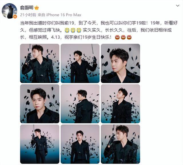更巧的是,当天正好是俞灏明出道19周年的日子。