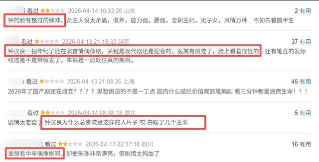 有网友直接吐槽,钟汉良又老又姨还硬挤偶像剧,朱珠搭戏都得申请工伤。