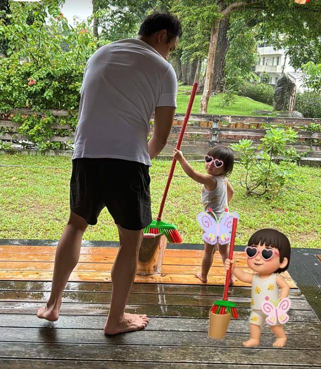 平时他会带着孩子们去露营玩水,陪他们在院子里打闹,还会亲自给女儿冲奶粉,十足的女儿奴。