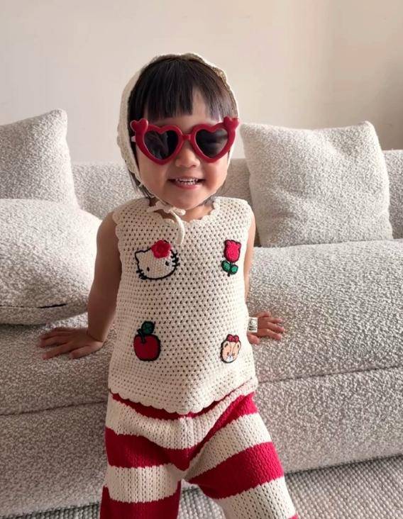 这次晒出的照片里,2岁的小女儿小名叫做小艾果,肉嘟嘟的小脸格外可爱。