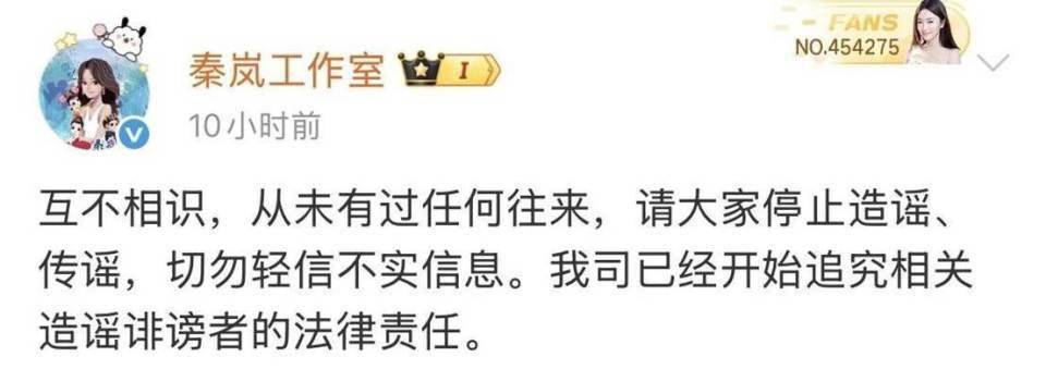事件发酵后,秦岚曾被无端牵连,但其团队迅速发文辟谣,金子涵也紧跟着澄清并非秦岚,直指有人故意引导舆论方向。