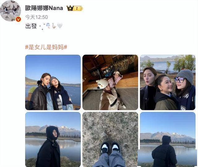 欧阳妮妮晒的姐妹合照里,只顾自己独自美丽,从头到尾都打扮得很精致。