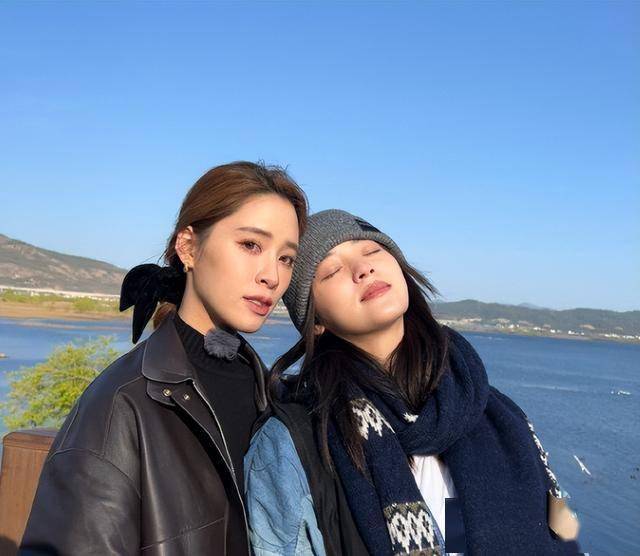她晒出的这张姐妹合照里,她自己用手机挡住了一半的脸,显得脸小又精致,还精心选了微低头的角度,刚好能衬出瓜子脸和尖下巴。