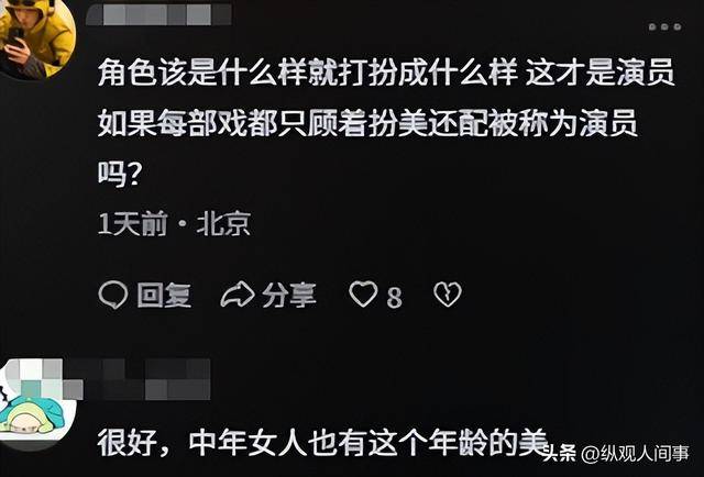 有人十分认可她的敬业:“这才是真正的演员,愿意为角色丢掉光环,比只靠精修和替身的流量明星强太多。”