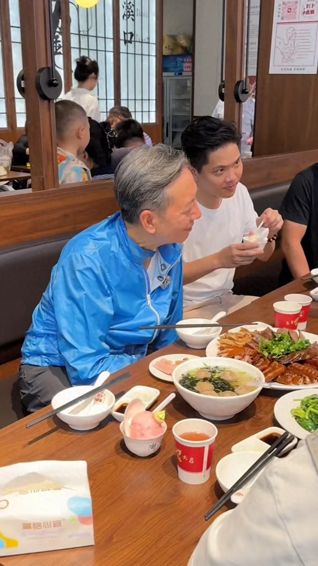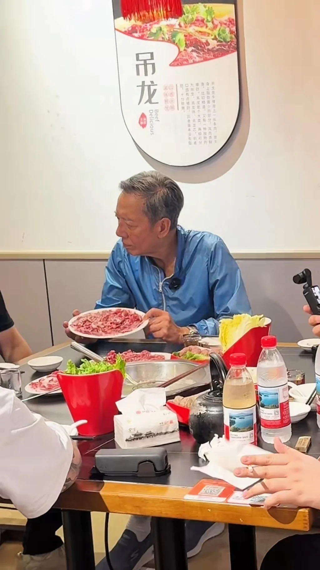 从网友发布的视频中可以看到,骆应钧当时正在该火锅店进行拍摄工作,他身着简约利落的蓝色风衣,搭配黑色西裤,一头自然花白的发丝,尽显沉稳儒雅的气质。相较于以往,骆应钧的身形明显消瘦了不少,与人交谈时颈部的筋脉略显突出,但他的精神状态十分不错,全程面带笑容,和现场的工作人员谈笑风生、相处融洽,态度亲切随和,丝毫没有明星的架子,十分接地气。