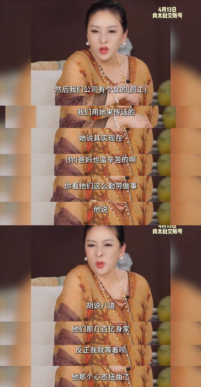 谈及这个小儿子,向太也是倒不完的苦水,直言:“我一天睡不了几个小时,手机24小时不关机,拍一部电影拿八千万也不肯停手,可他倒好,觉得钱是长在户口本上的,不用努力就能躺平!”