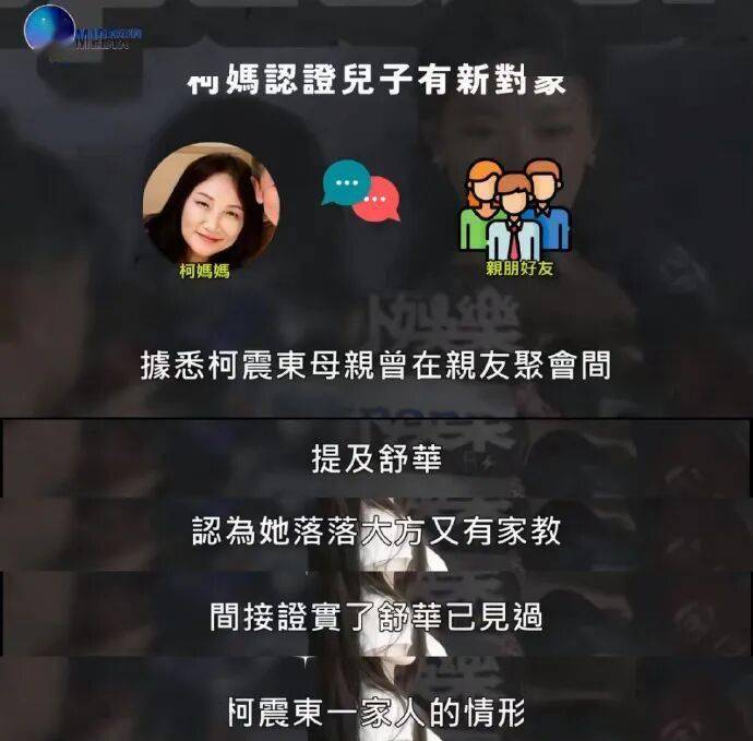报道称女方频繁出入柯家,并且已经见过柯震东父母。更“实锤”的是,柯震东母亲在亲友聚会中曾称赞叶舒华“落落大方、有家教”,这番评价被外界解读为间接承认了儿子的恋情。