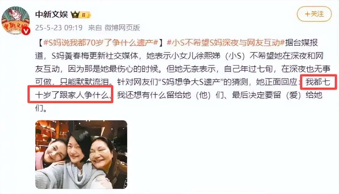 事后,小S解释道自己是在聚餐时想起了姐姐。