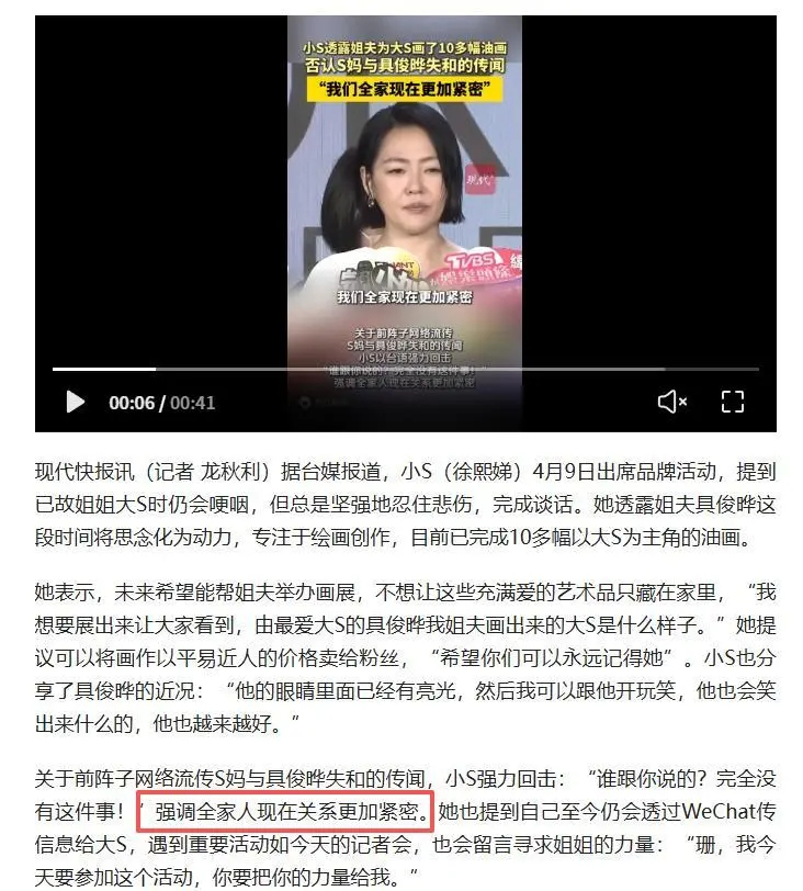 小S强势回击:我们全家人的关系现在更加紧密了。