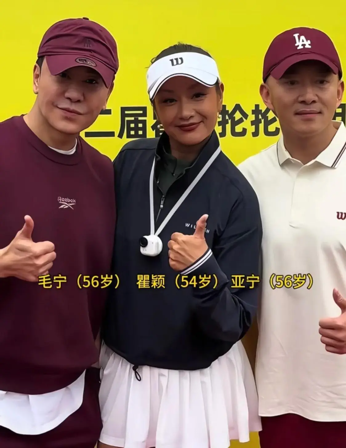 瞿颖在北京举办了抡抡杯明星赛,黄小蕾、朱丹等明星都来捧场,毛宁和亚宁也一起来了。毛宁和亚宁都56岁了,曾经帅气的他们都老了,但是两人身材保持的都很好,他俩在活动现场笑的很