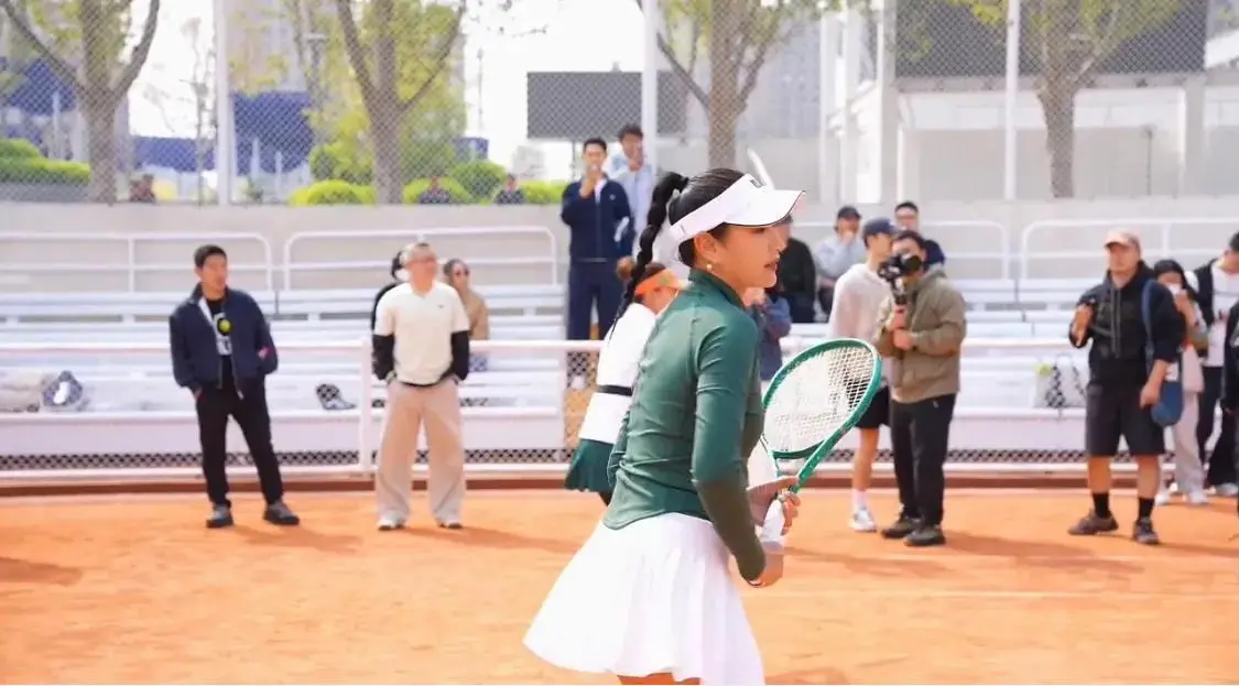 54岁的瞿颖穿着绿色网球服在赛场上打球,她扎着麻花辫,整个人很有活力,自律的她很美。