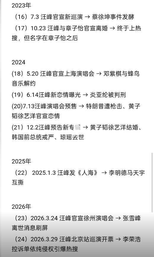 而他的演唱会,依旧没有改变“汪峰定律”,精准撞上娱乐圈一个又一个大事件,每一次都被“截胡”。