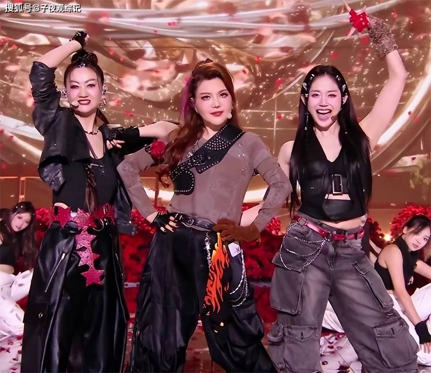 李小冉全程跑调但每句好像是原创,王濛用东北大碴子味儿硬掺和着甜歌,唐艺昕青筋凸起使劲救场, 三个人结束姿势的时候心虚地比心,被叫做膏药贴组合。