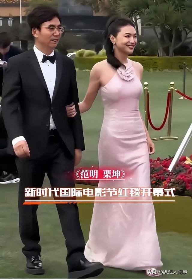 身旁的粟坤则截然相反,一身黑色吊带长裙勾勒出玲珑曲线,锁骨明显,性感中带着妩媚,一出场就赚足眼球。