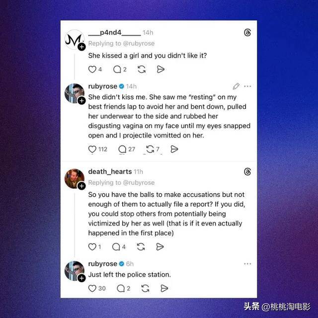 回顾这起风波的起因,就在前几日,曾参演《蝙蝠侠女孩》和《女子监狱》的鲁比·罗丝突然发难,指控当年二十出头的凯蒂·佩里在夜店对她有极其不轨的举动,甚至爆出对方强行扒开内衣往她脸上蹭、导致她当场呕吐等令人咋舌的细节。
