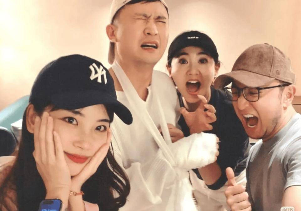 王冰冰也没闲着,一边摆出 “万分悲痛” 的夸张表情,一边跟着起哄,嘴里还念叨着 “强烈谴责肇事小狗”,手上却忙着跟月亮姐姐一起拍搞怪合照,把杨帆的 “受伤现场” 变成了团建打卡点。