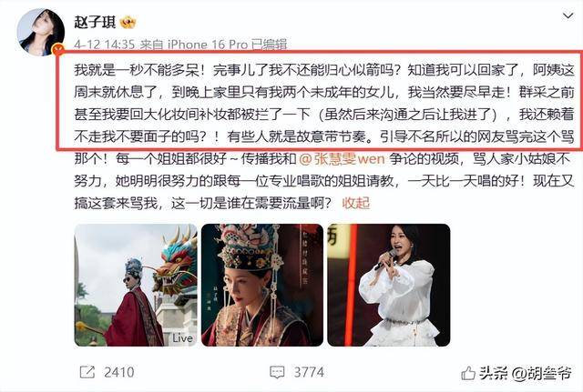 直到4月16日凌晨,回到北京两天的赵子琪,发现还有人不断搞事情,黑稿满天飞。