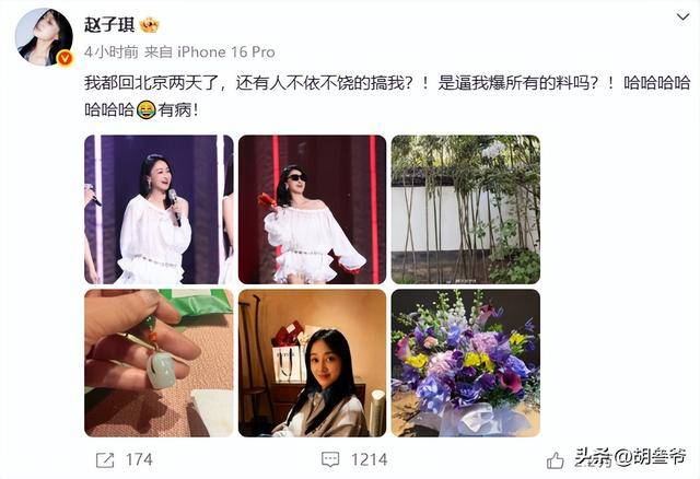 4月16日,演员赵子琪突然在社交账号连发六条动态。