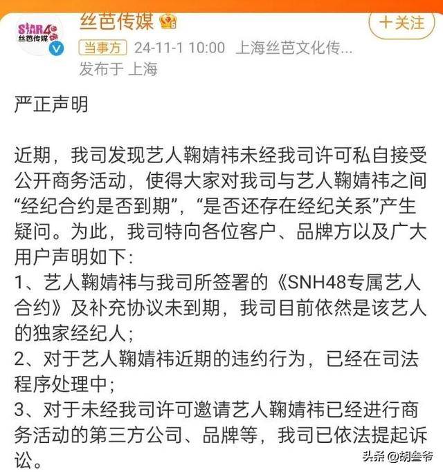 而鞠婧祎这边,她和丝芭的纠纷,算得上是内娱最拉扯的合约大战之一。