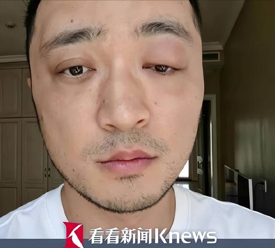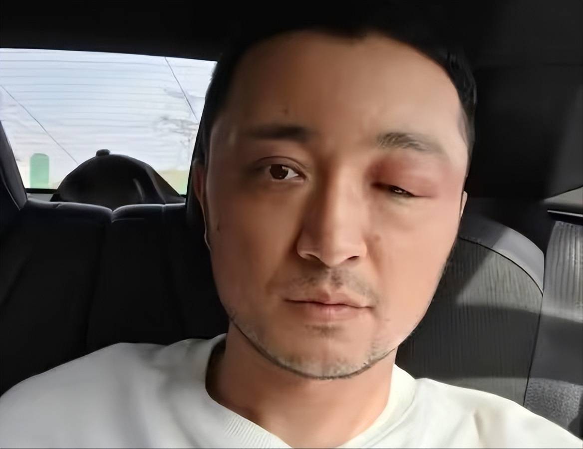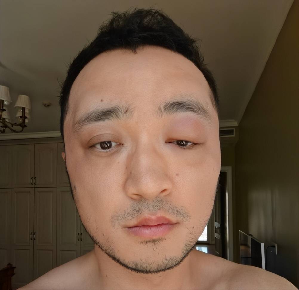 他把眼睛对着镜头放大拍,眼皮像被吹胀的气球,双眼皮直接“离家出走”,红肿从眼尾一路蔓到眼眶,越看越像在说:别问了,问就是疼。