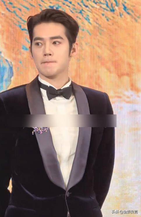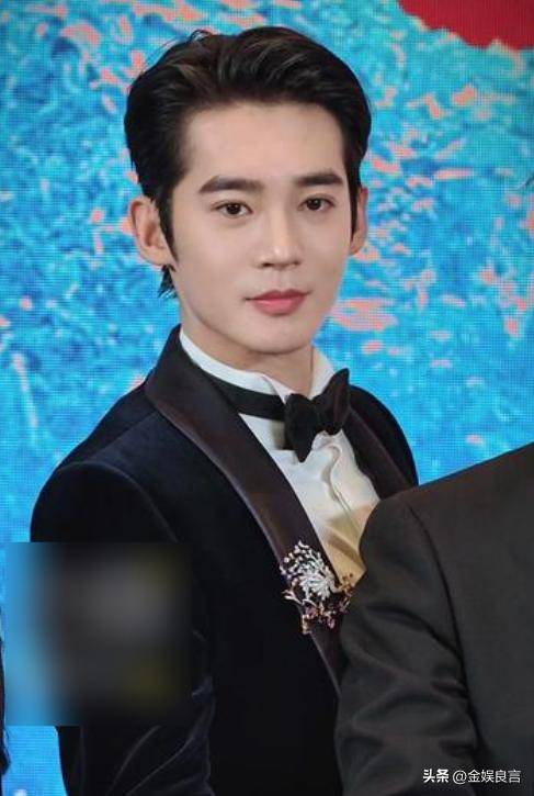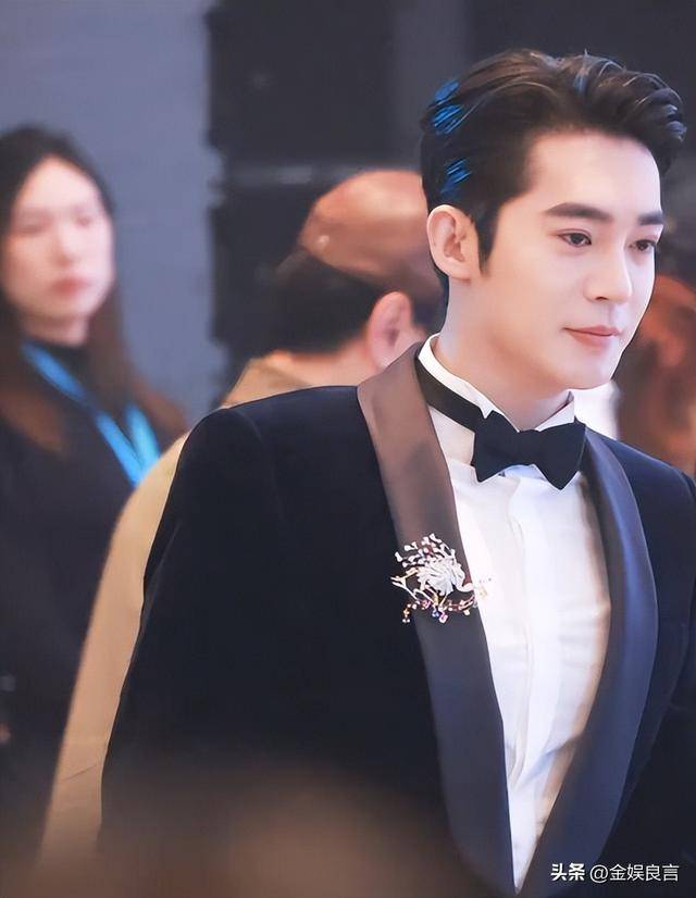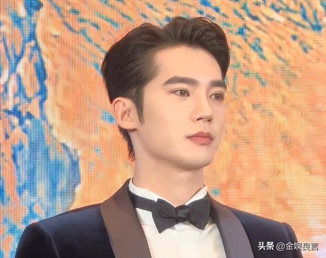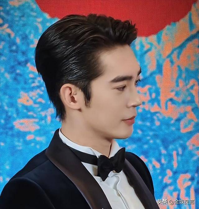 他穿的黑色西装是简约款,没有多余的装饰,却被他穿得笔挺有型,露着额头,眉眼舒展,鼻梁高挺,嘴唇线条清晰,堪称内娱新生代小生里最周正的一位。