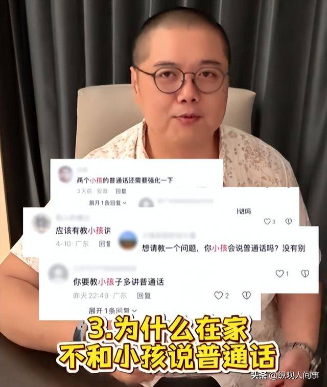 还有网友质疑他在家不跟孩子说普通话,他也直接回怼不接受道德绑架。
