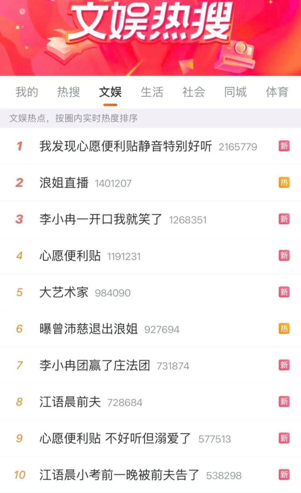浪姐一公播出时,占据微博热搜文娱榜前十