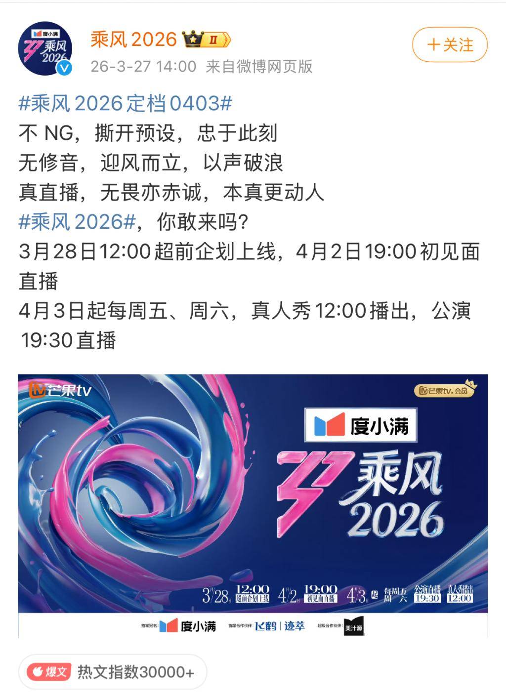 《浪姐7》微博宣布直播模式