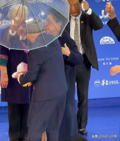 当天红毯湿滑,她全程小心搀扶牛犇,一手挽臂一手护腰,刻意放慢脚步配合对方节奏。