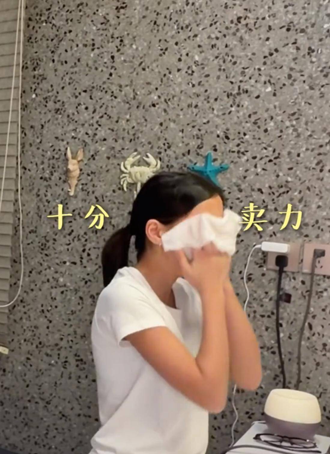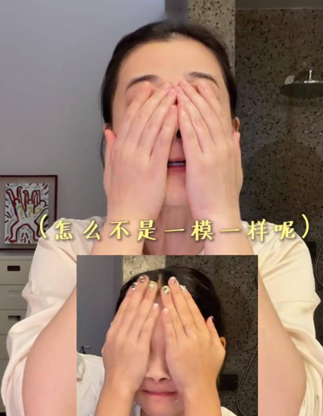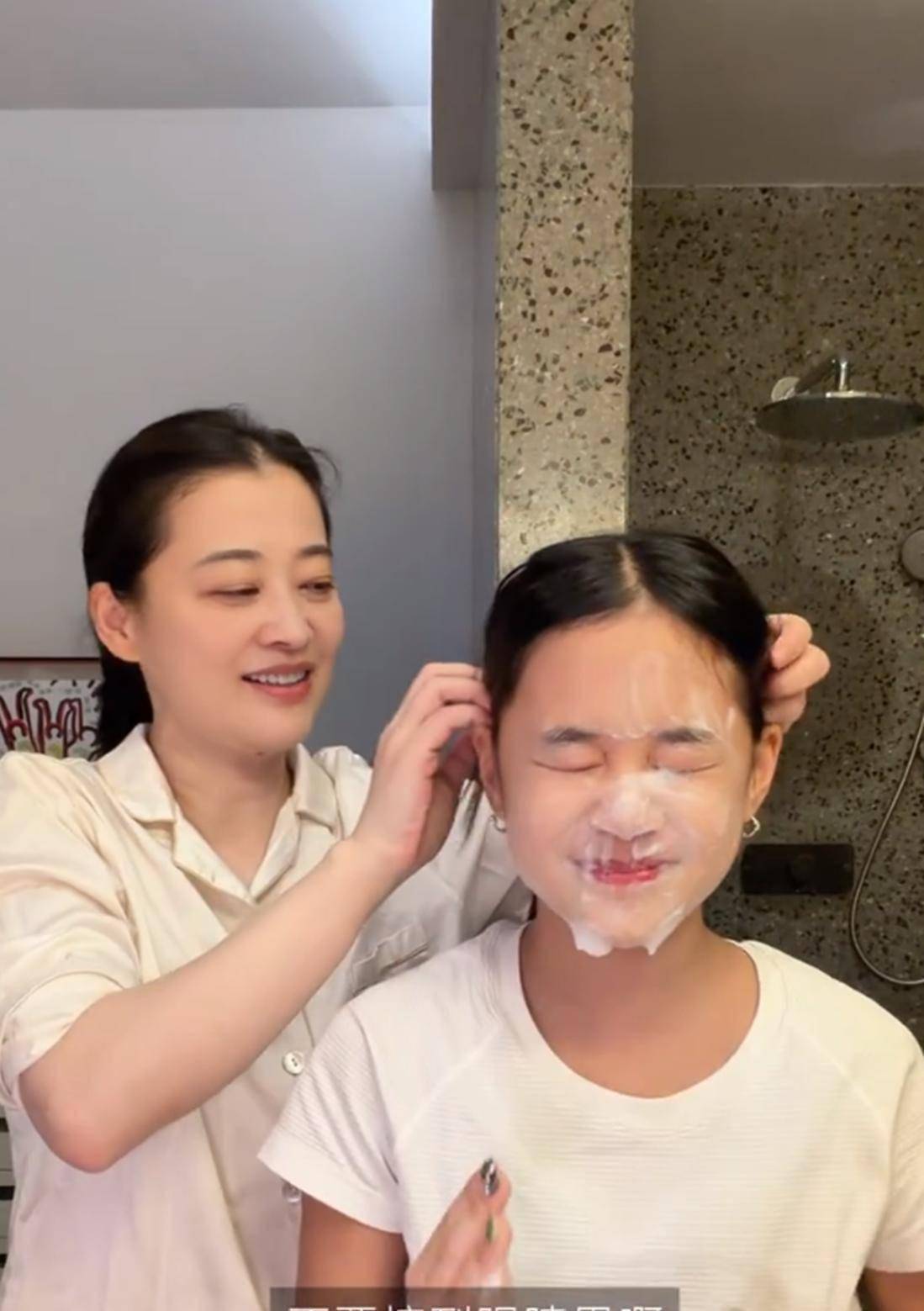 4月15日晚上,梅婷刚准备洗脸,就被旁边12岁女儿快快的动作逗笑了。 小姑娘双手在脸上大力揉搓,看着又急又猛。 梅婷站在一旁忍不住笑,一边笑一边吐槽:“快快,这是脸不是脚后