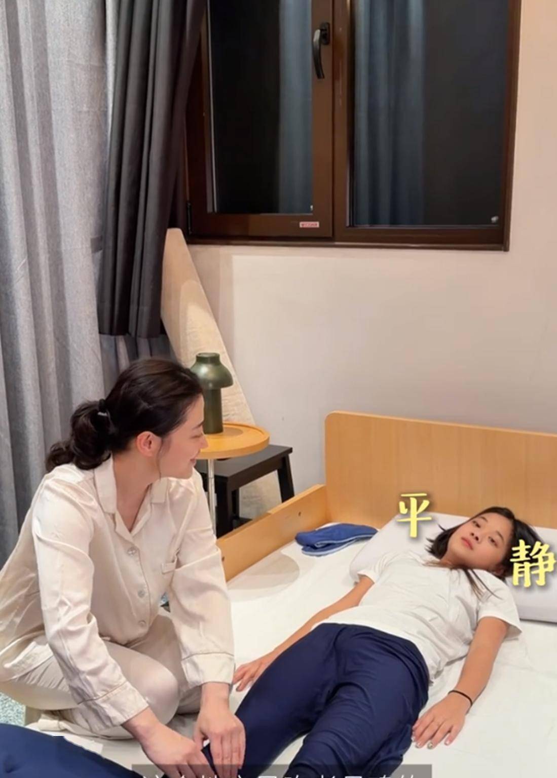 护完肤,梅婷和女儿又互相按摩。 和女儿在一起时的梅婷完全没有长辈的威严,只有平等的陪伴与亲昵。 摄影师在镜头外说了一句:“怎么不是一模一样呢。 ”