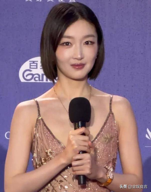 最先登场的是刘浩存,小姑娘穿了一身露肩礼服,难免露出副乳,换别人可能会显得尴尬,但她全程神色坦然,抬头挺胸,举手投足间没有丝毫局促,比刚出道时从容大气太多。