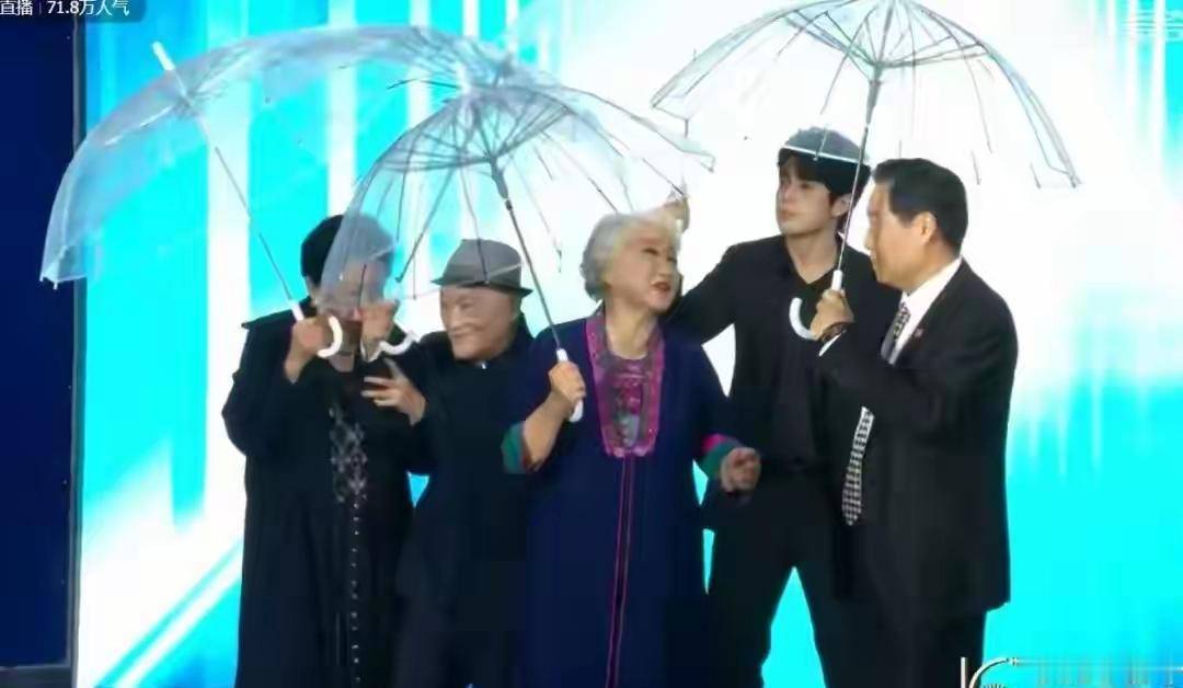 这几位老艺术家,哪一个不是作品堆起来的?可他们在雨里还是把礼数做足,把观众放在心上。