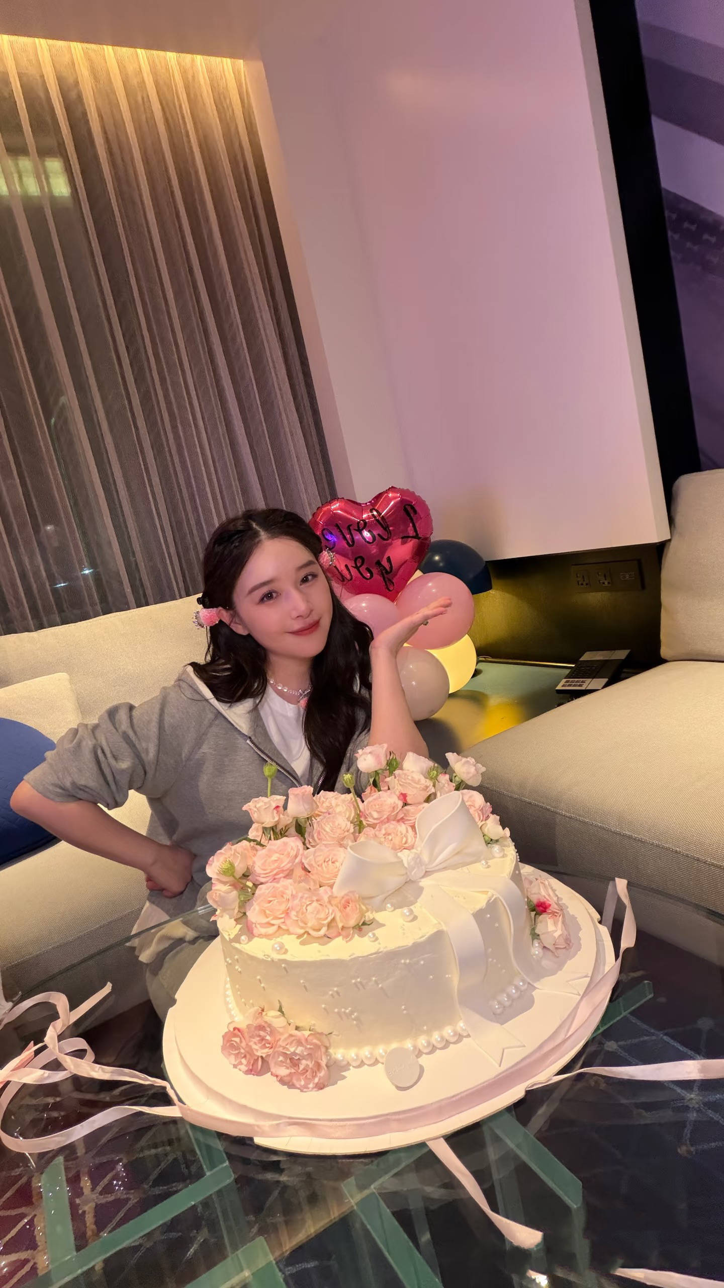 虽然《乘风》还在录制,但姐妹们还是给阚清子准备了惊喜。粉红色的气球、还有粉白色的超大蛋糕,满满的都是少女风。阚清子坐在蛋糕前拍照,她的眼睛眯成一条缝,太幸福了!