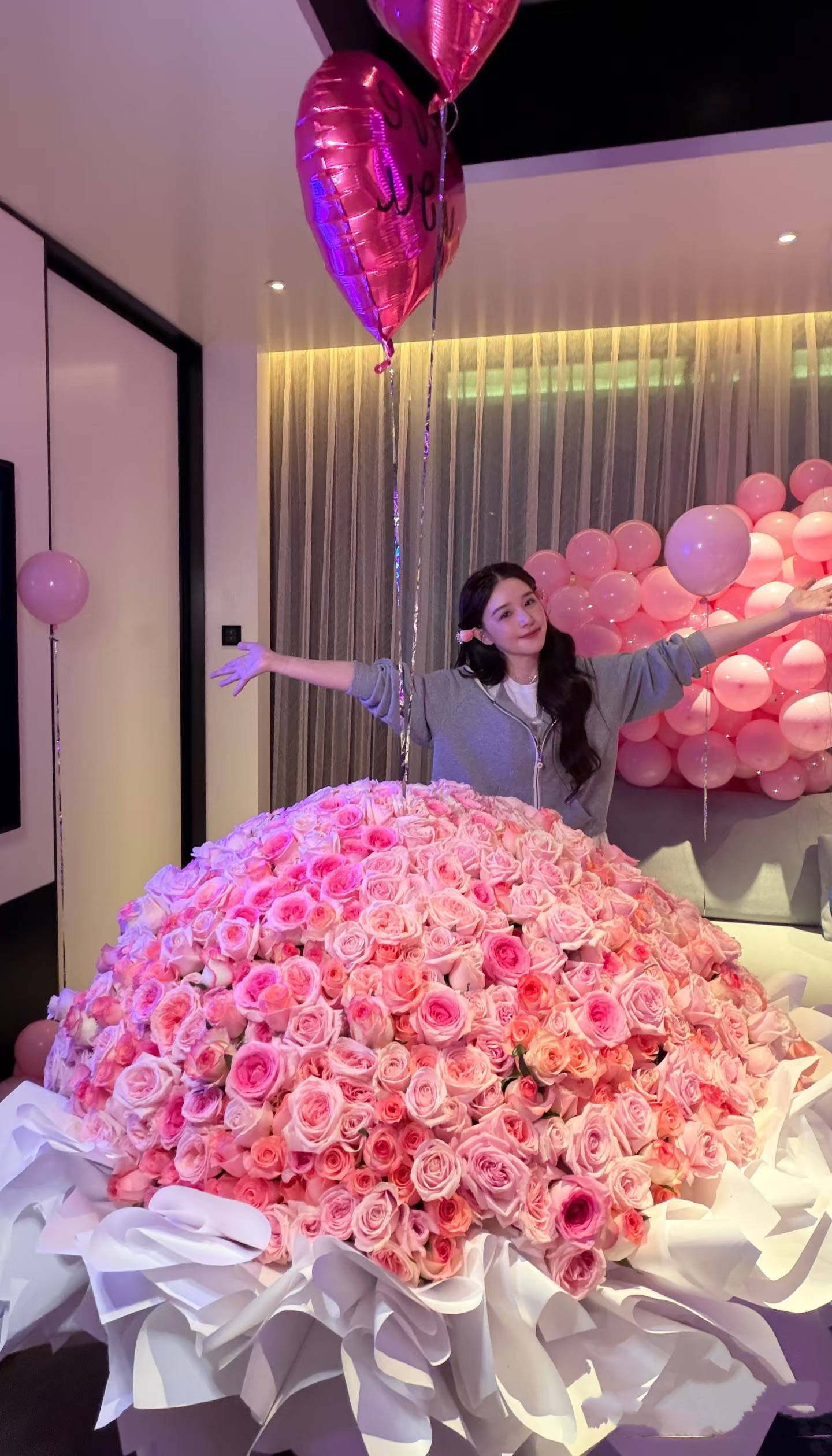 面前是超大束的粉色玫瑰花,虽然不知道是姐姐送的、还是老公送的,但对阚清子来说都一样,都是美好的期许和祝福。