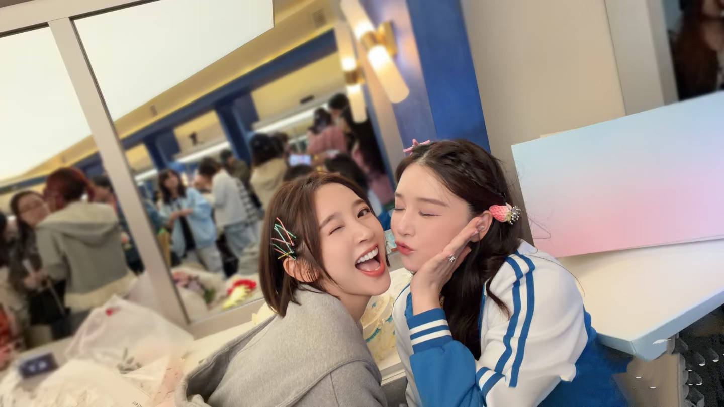 阚清子和唐艺昕的合影,唐艺昕一头短发、扎着眼睛拍照好事俏皮,阚清子在这里收获了很多朋友,心情也好了许多。